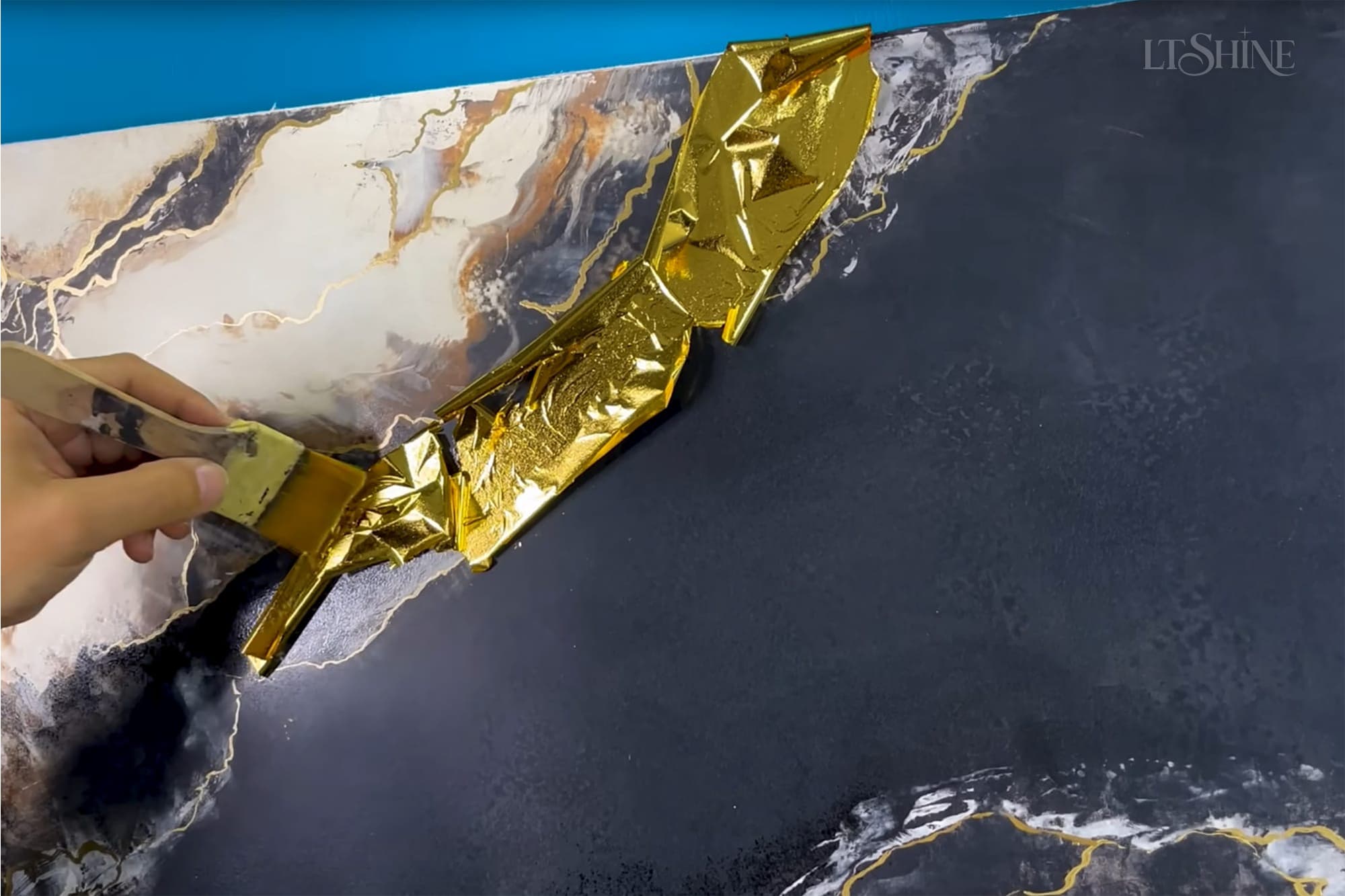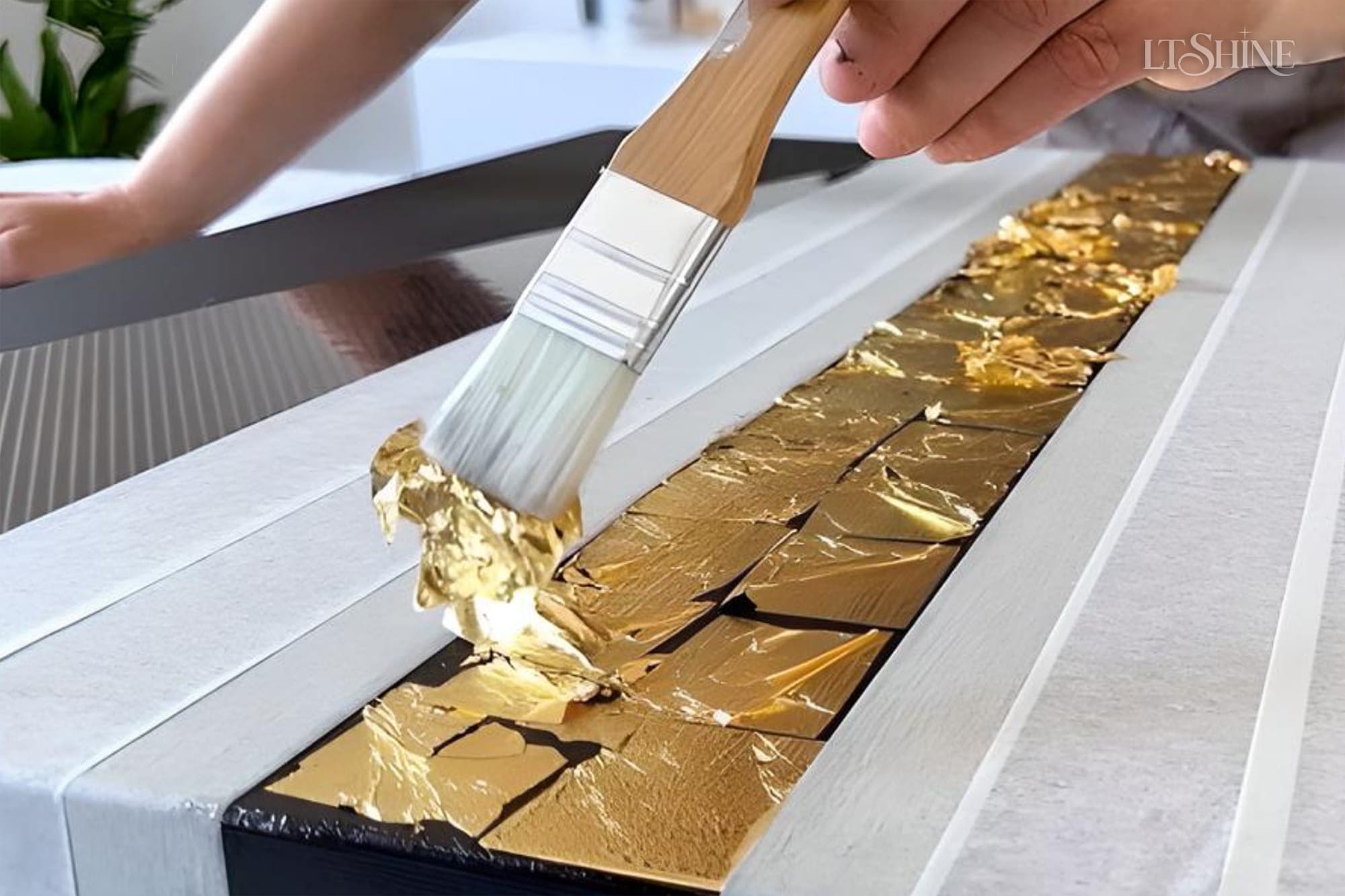 É um adesivo para colagem de folha metálica da LT Shine Cold Transfer Metallic.